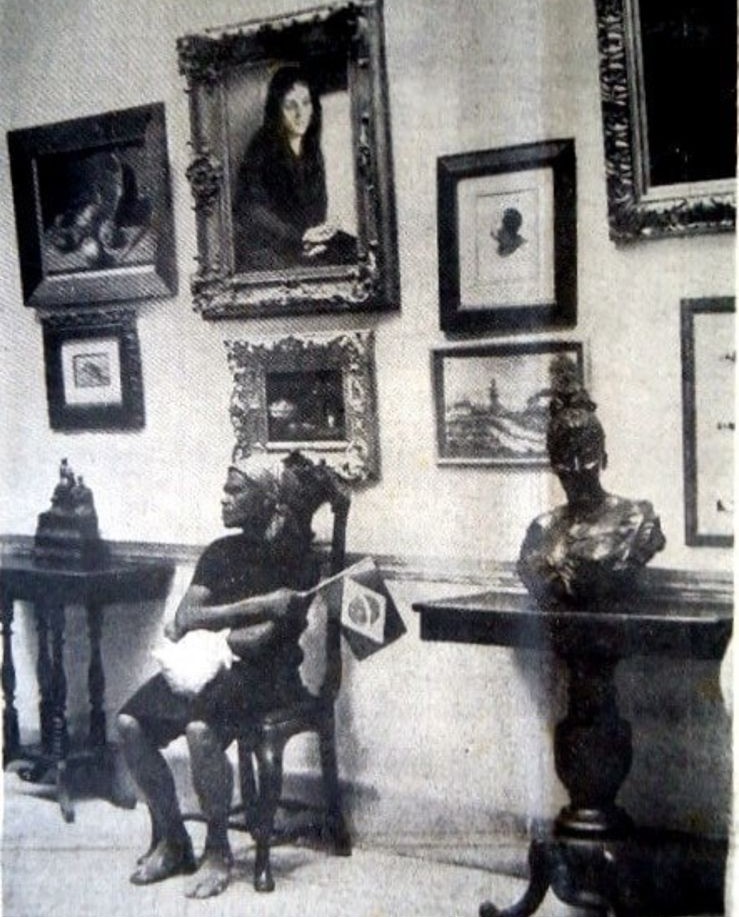 Na reportagem que acompanhava a fotografia, informa-se que a senhora compunha o Clube das Mães da Assistência Social Nossa Senhora da Glória. A escolha por visitar o Museu no dia da Pátria teria partido dos próprios membros do Clube. O texto exalta o flagrante do fotógrafo Jorge Couri na captura do momento, no qual a senhora está sentada em uma cadeira do acervo. Entretanto, tal instantâneo foi logo interrompido, pois os funcionários do Museu providenciaram, rapidamente, uma cadeira comum, o móvel adequado para ela se sentar. Importante notar que, diferentemente do que ocorria com o seleto grupo convidado por Geralda Armond para as tardes de Chá no Museu da Villa, que era servido nos móveis pertencentes ao fundador do Museu, dessa feita, o objeto do acervo não pôde ser utilizado pelo público visitante.