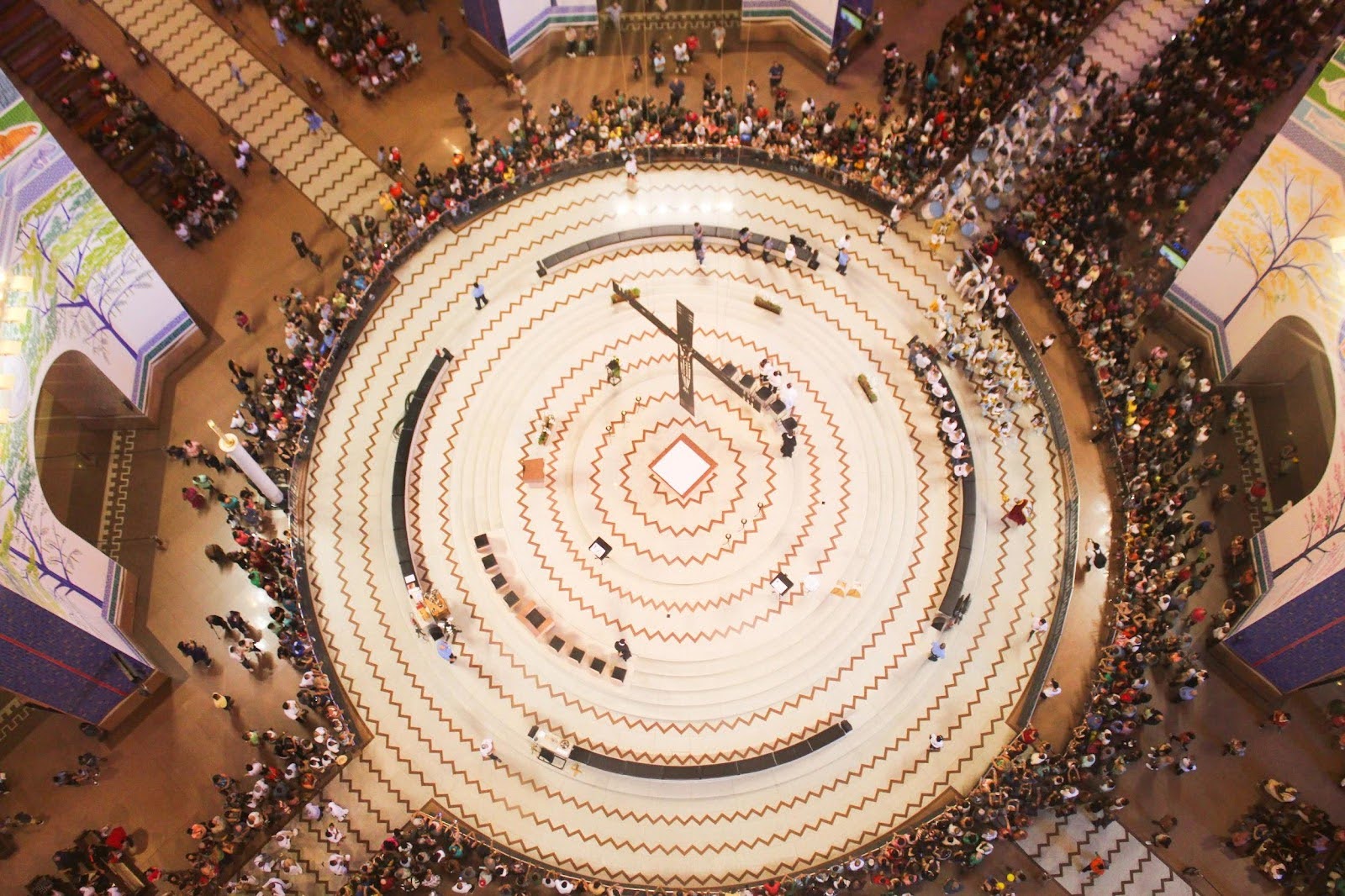 Assim como na Basílica Histórica, o grandioso cortejo adentrou o Santuário Nacional, circundou o altar-mor e seguiu em direção ao nicho onde está a imagem encontrada no rio Paraíba do Sul em 1717. Os grupos, assim como no primeiro cortejo, portavam seus estandartes e bandeiras, com referências a São Benedito, diferentes denominações de Nossa Senhora — do Rosário, Aparecida, de Fátima, da Conceição —, Santa Ifigênia, São Sebastião, São Jorge, ao Divino Espírito Santo etc.; expressavam a sua musicalidade através de instrumentos manufaturados ou industrializados, com cores geralmente relacionadas às usadas nas vestimentas definidoras das identidades de cada um; com suas cortes de reis e rainhas do Congo, com coroas nas cabeças ou nas mãos, cetros, ramalhetes e guardiões. Como se tratava, dessa vez, de um espaço mais amplo, o público presente pôde acompanhar com mais visibilidade as quase duas horas de procissão. Muitos dos integrantes beijavam o chão do altar-mor ou o tocavam com as mãos ao subirem sobre o presbitério; ao passarem diante da imagem de Nossa Senhora Aparecida no nicho visitado por milhares de pessoas diariamente, os músicos erguiam seus instrumentos ao alto. Era visível a grande emoção que tomava conta de muitos dos integrantes das congadas, com os olhos cheios de lágrimas, bem como do público, que não só acompanhava atento como desejava tocar as bandeiras e estandartes. Ao cair da noite, uma pequena procissão partiu da capela de Santa Rita, próxima ao Santuário Nacional, e levou a imagem dessa santa à Igreja de São Benedito, num percurso de pouco mais de um quilômetro.