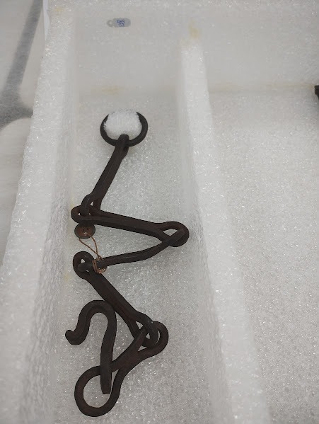 Na maioria dos casos, a denominação dos objetos correspondia ao que estava na lista das apreensões, a mesma que se manteve ao longo desses anos como referência aos artefatos: ofá de Oxóssi, espadas de matança, ferramentas de Ossain, etc. Entretanto, chamou-nos atenção um item classificado como “corrente” e que foi identificado por S. Zé Diabo como um Quelê de Ogum, o senhor dos ferros. Inclusive, com a demonstração de que o tamanho da corrente era a medida certa para envolver o pescoço e que as pontas se uniam em um fecho.