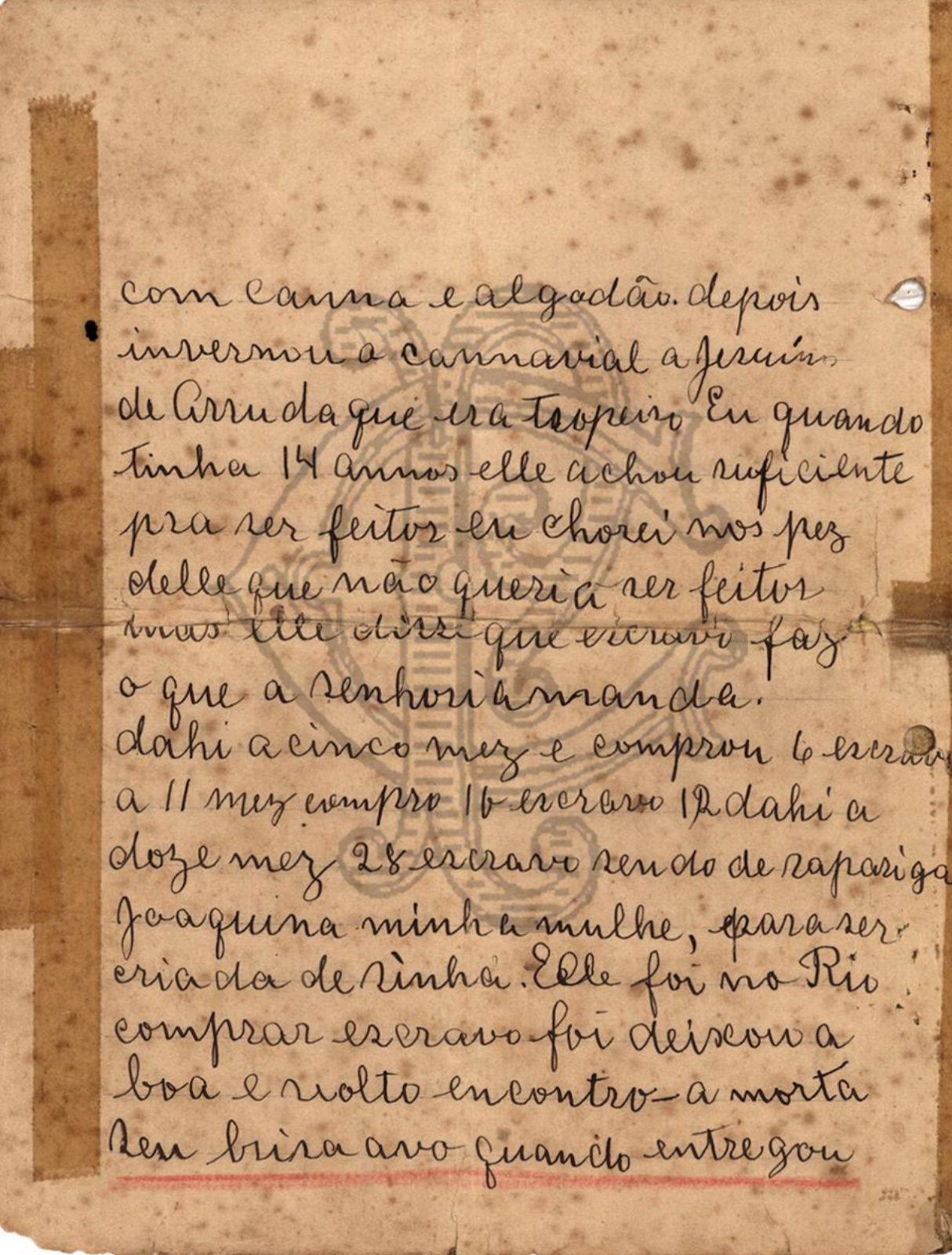 “Eu quando tinha 14 annos elle achou suficiente pra ser feitor eu chorei nos pez delle que não queria ser feitor mas elle disse que escravo faz o que a senhoria manda.”